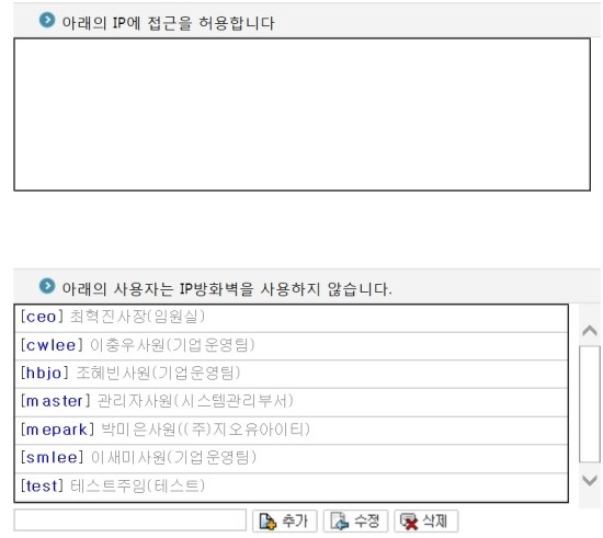 IP방화벽이란 그룹웨어 접근을 허용하는 IP를 등록하여 등록되지않은 IP는