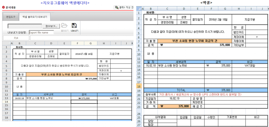 전자결재의 엑셀에디터에 많은 관심을 가져주셨는데요~! 어떤 편리함이 있는지 몇 가지 살펴볼까요?