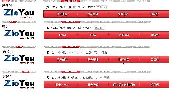 저희 지오유 그룹웨어(www.zioyouit.com)에서는 한국어,영어,일본어,중국어 4개언어가
