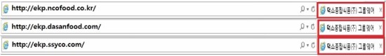 위 화면과 같이 접속주소는 다르지만, 로그인 시 덕소종합식품으로 표기가 되는것을