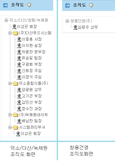 이상균 대표님은 기본 그룹웨어를 덕소종합식품으로 두고,