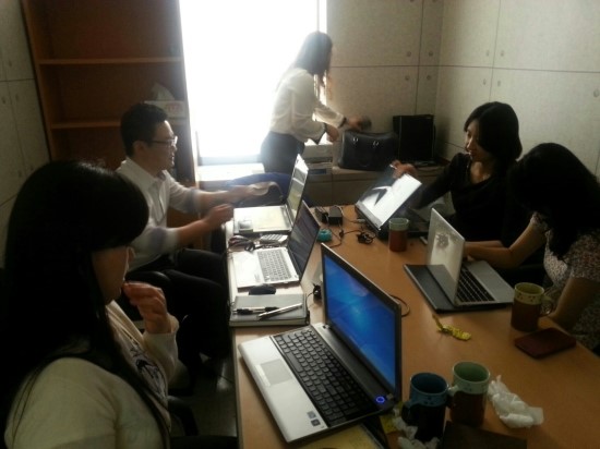 신규업체인 UIA, 한국LED의 담당자와 기존 지오유 그룹웨어를 사용하고 있지만 담당자가 바뀌면서 교육이 필요했던 태형기업!!! 이렇게 세 업체가 모여 UIA에서 집체교육을 받았습니다.